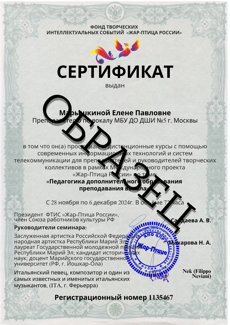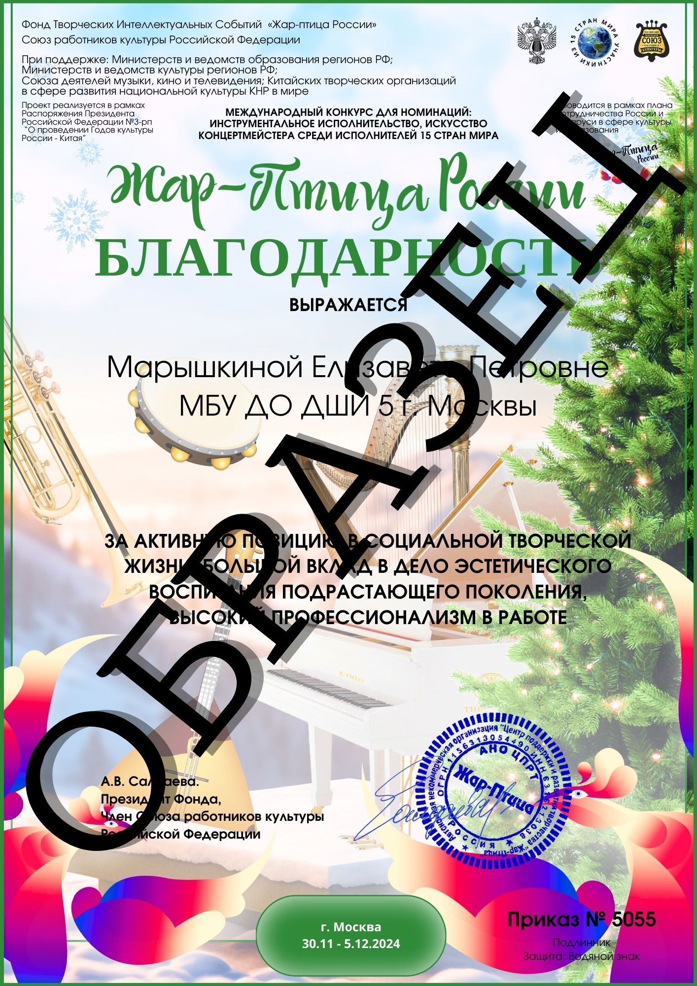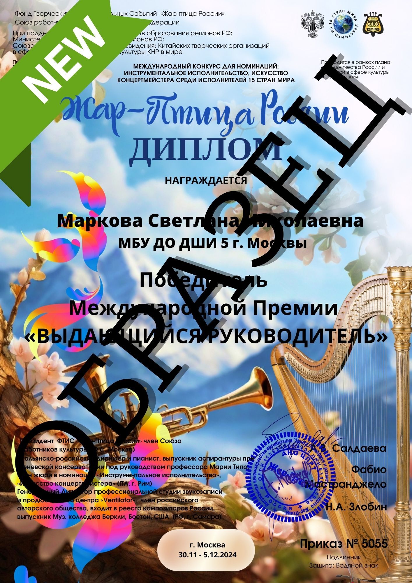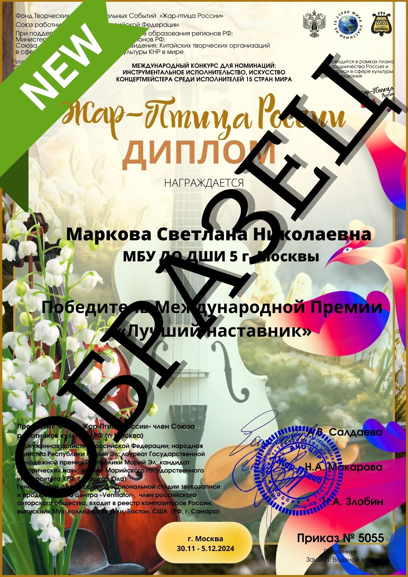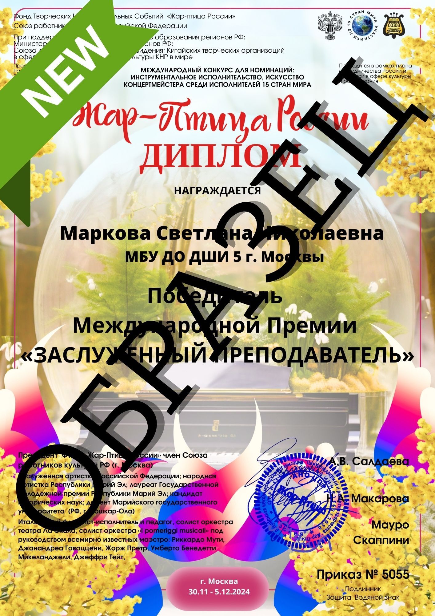 *только для тех педагогов, чей колектив/ученик занял Гран-при или Лауреата 1