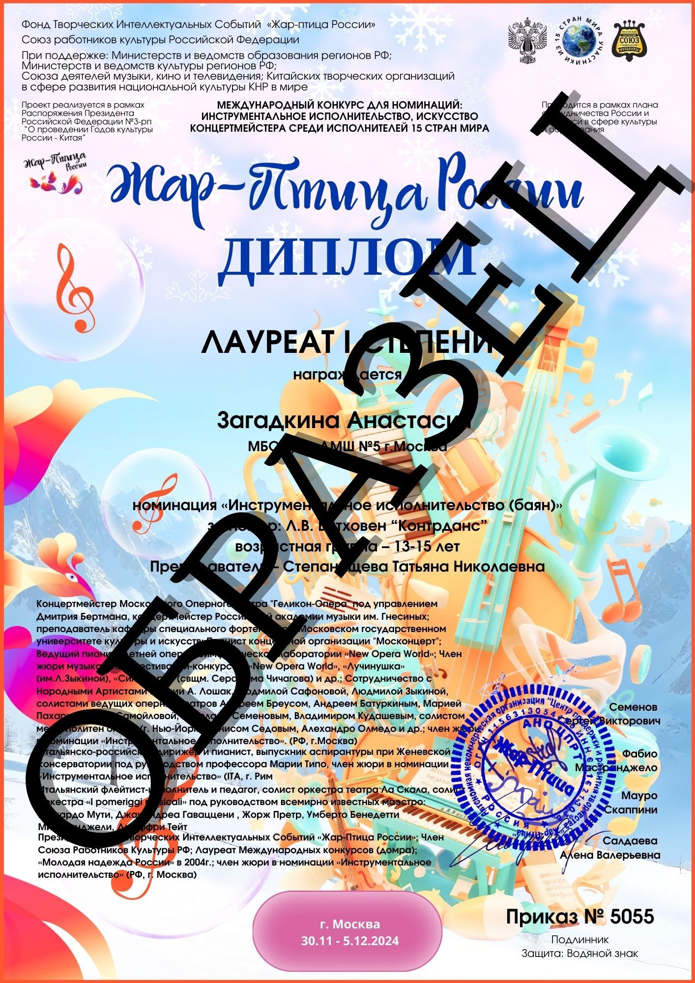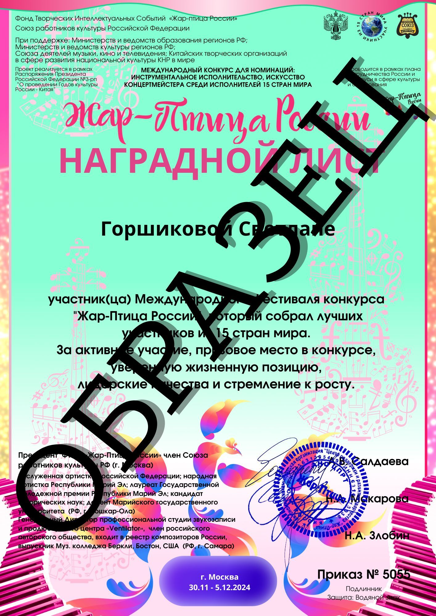 Это образец, в дипломе будет Ваше место из итоговой таблицы. Жюри будет из вашей номинации.