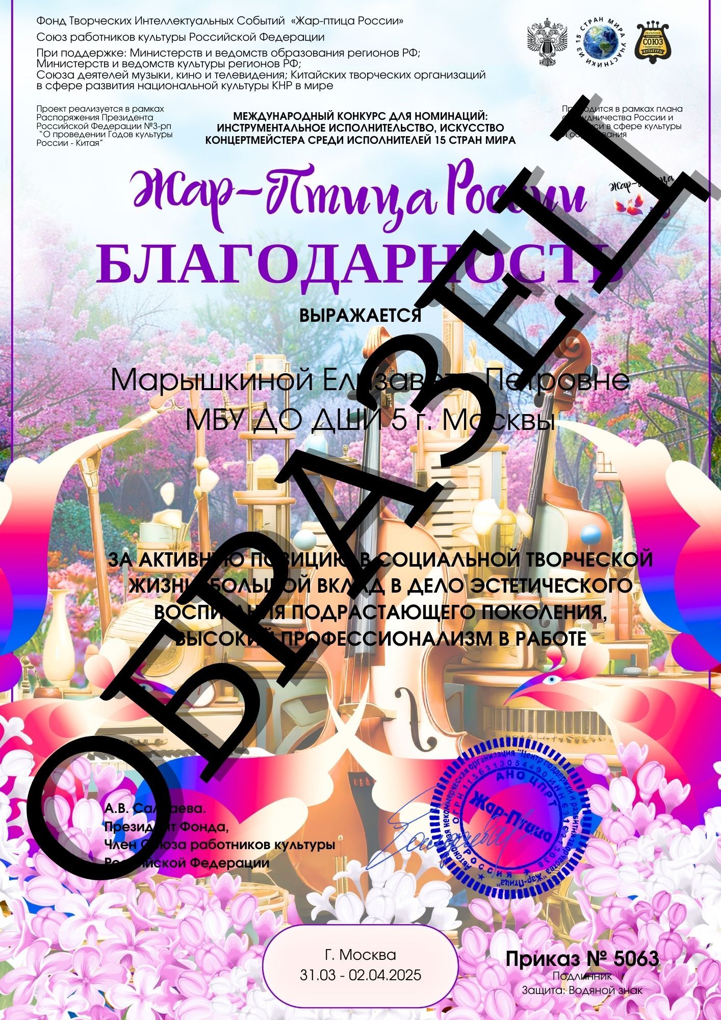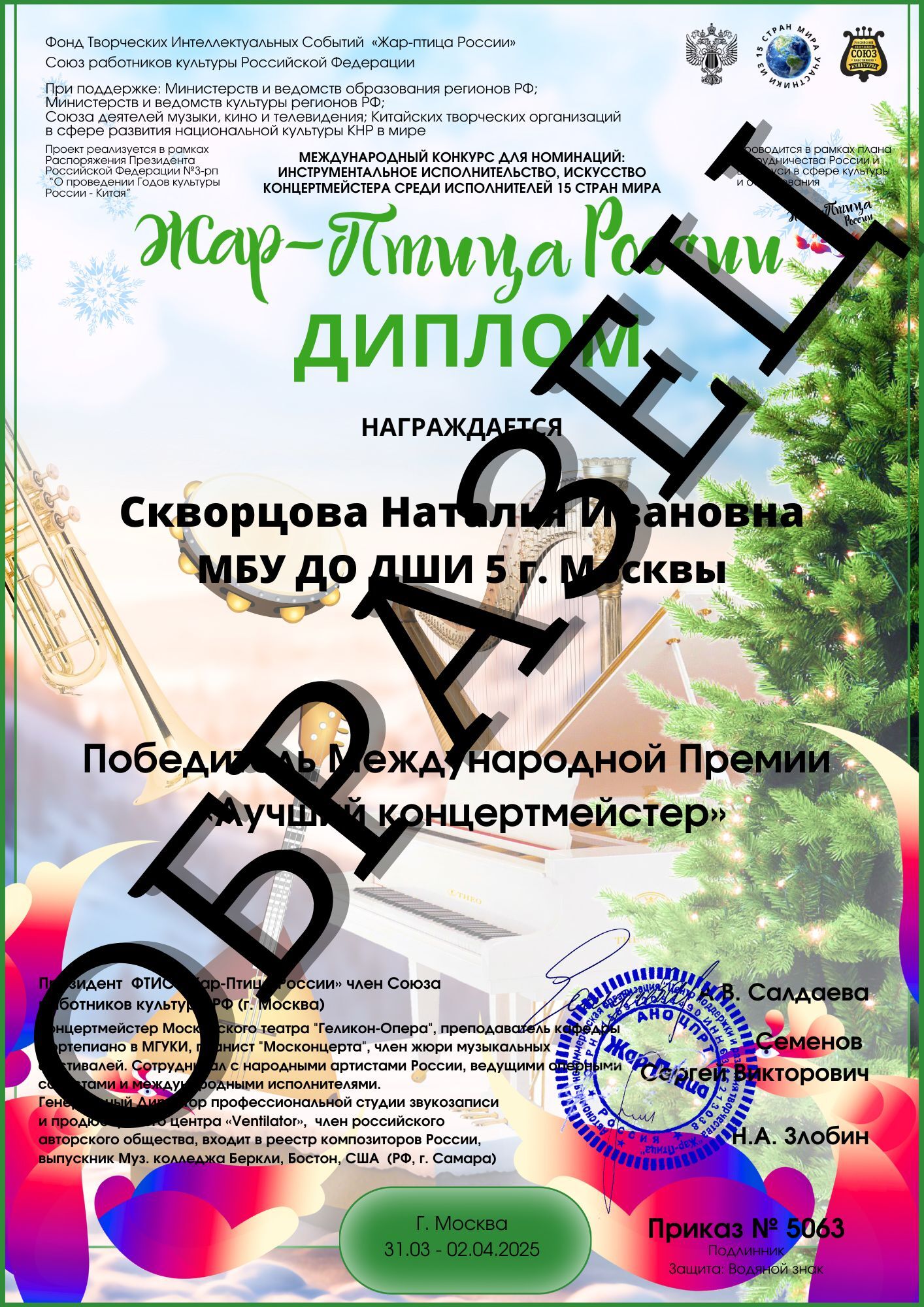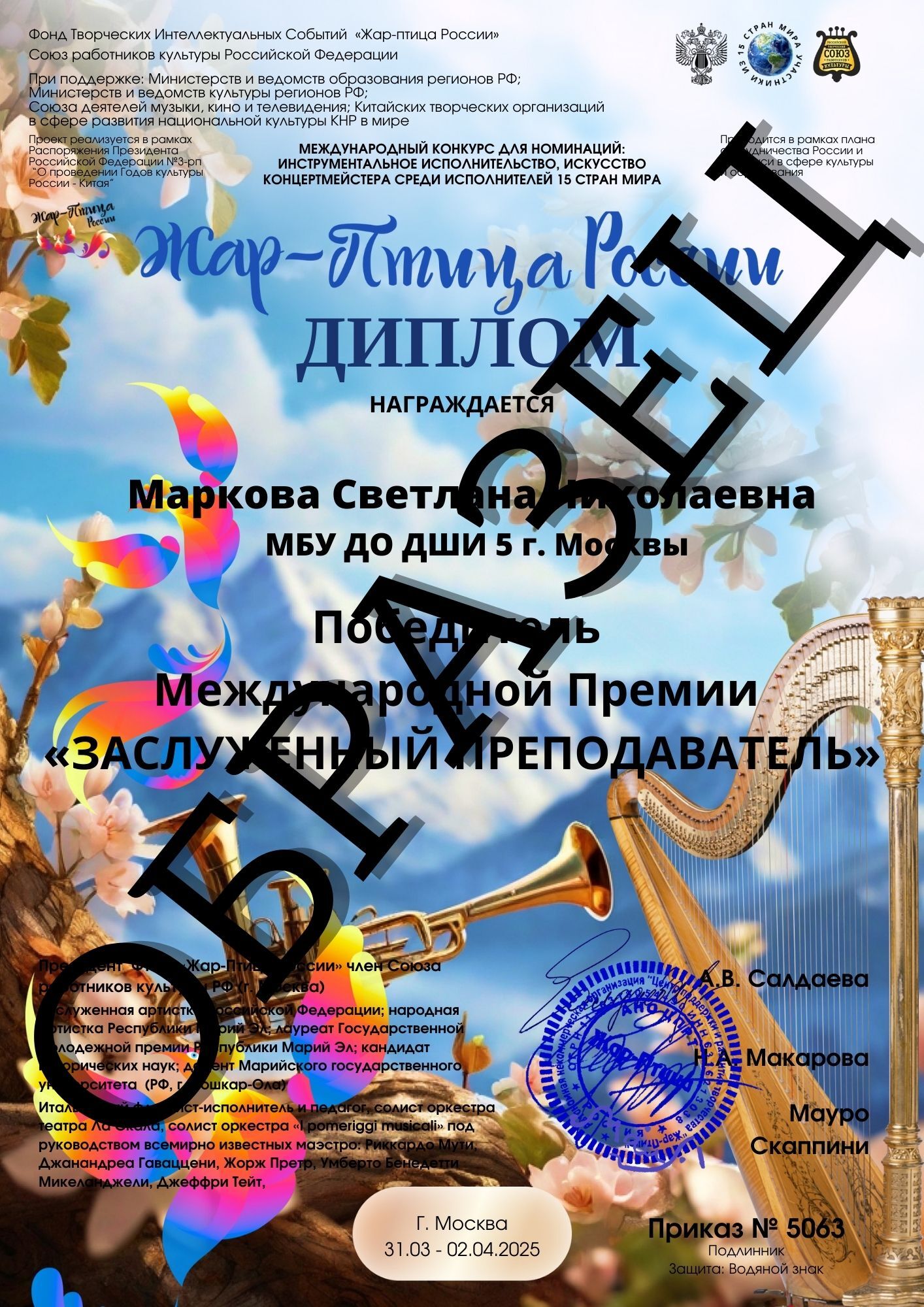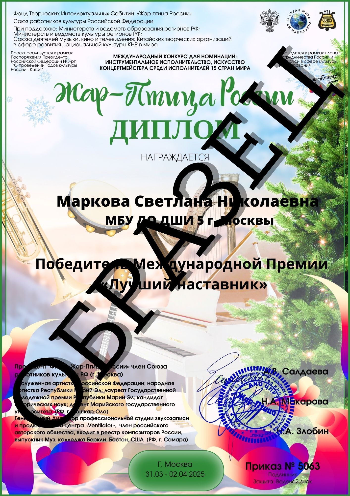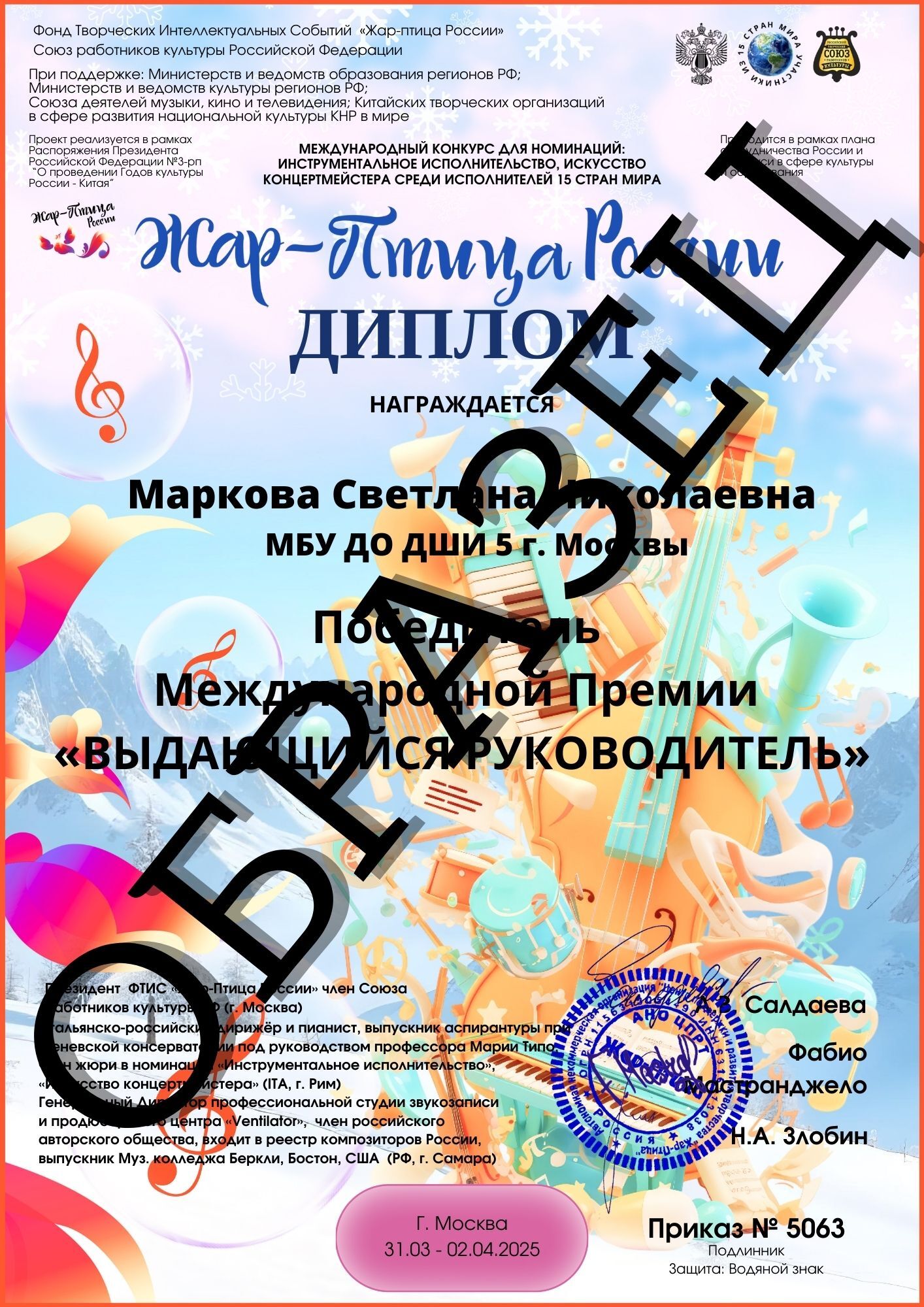 *только для тех педагогов, чей колектив/ученик занял Гран-при или Лауреата 1