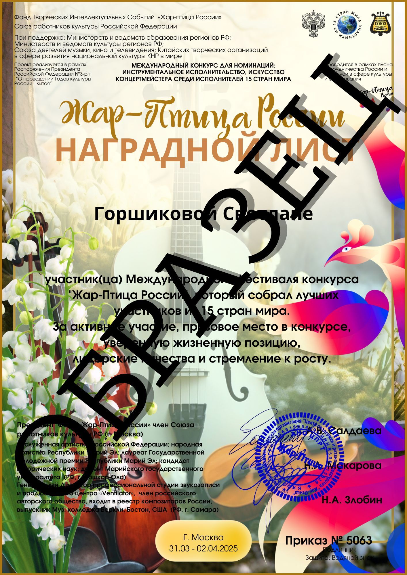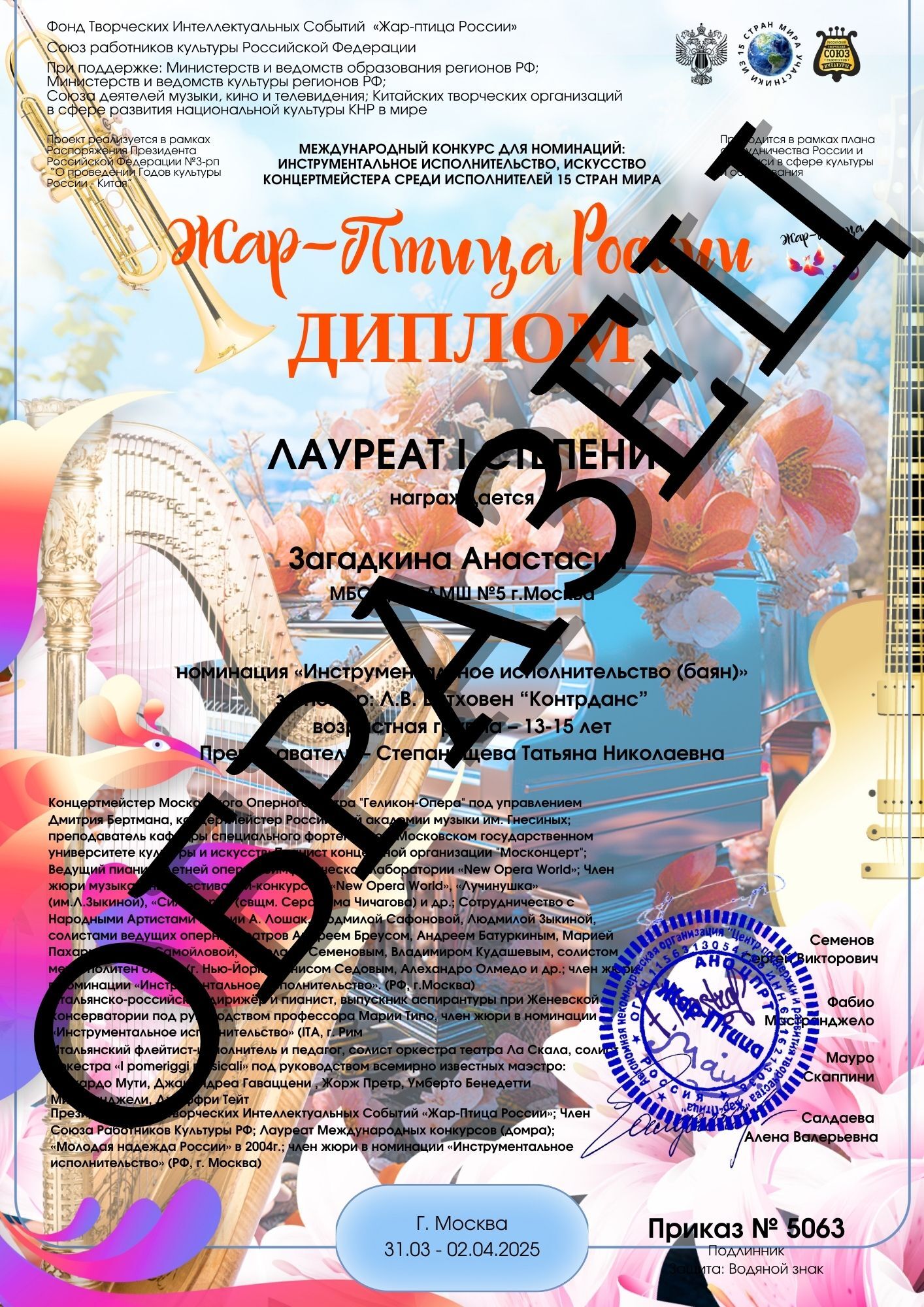 Это образец, в дипломе будет Ваше место из итоговой таблицы. Жюри будет из вашей номинации.