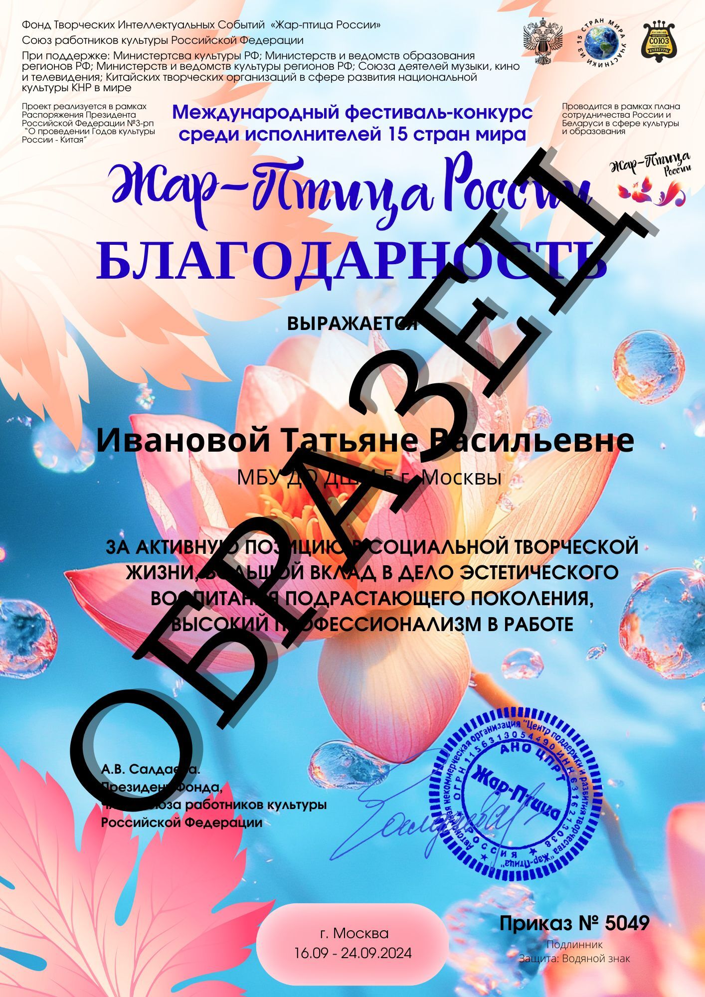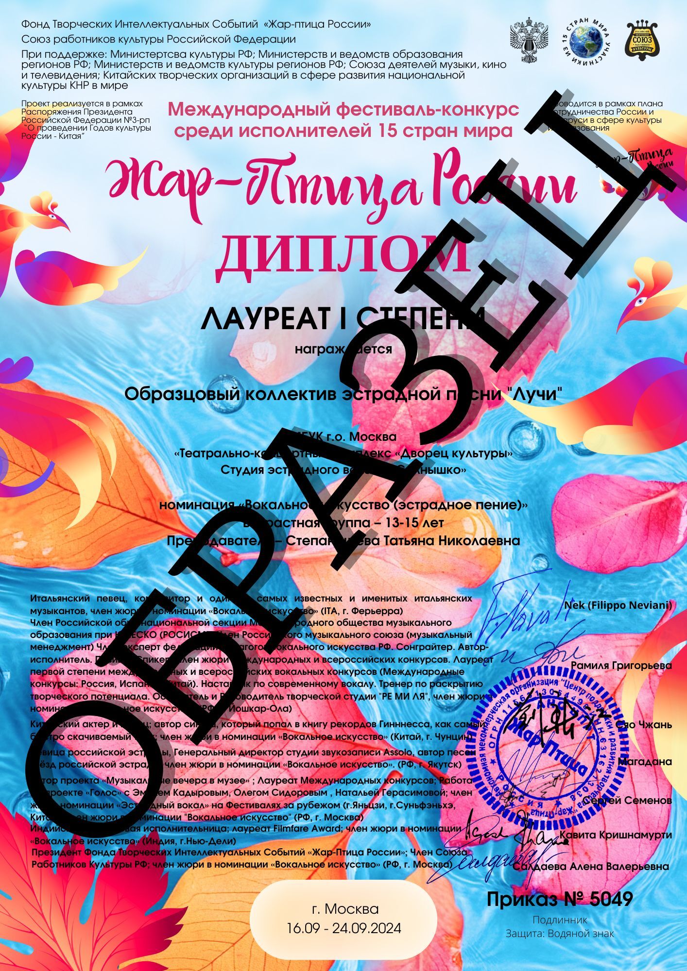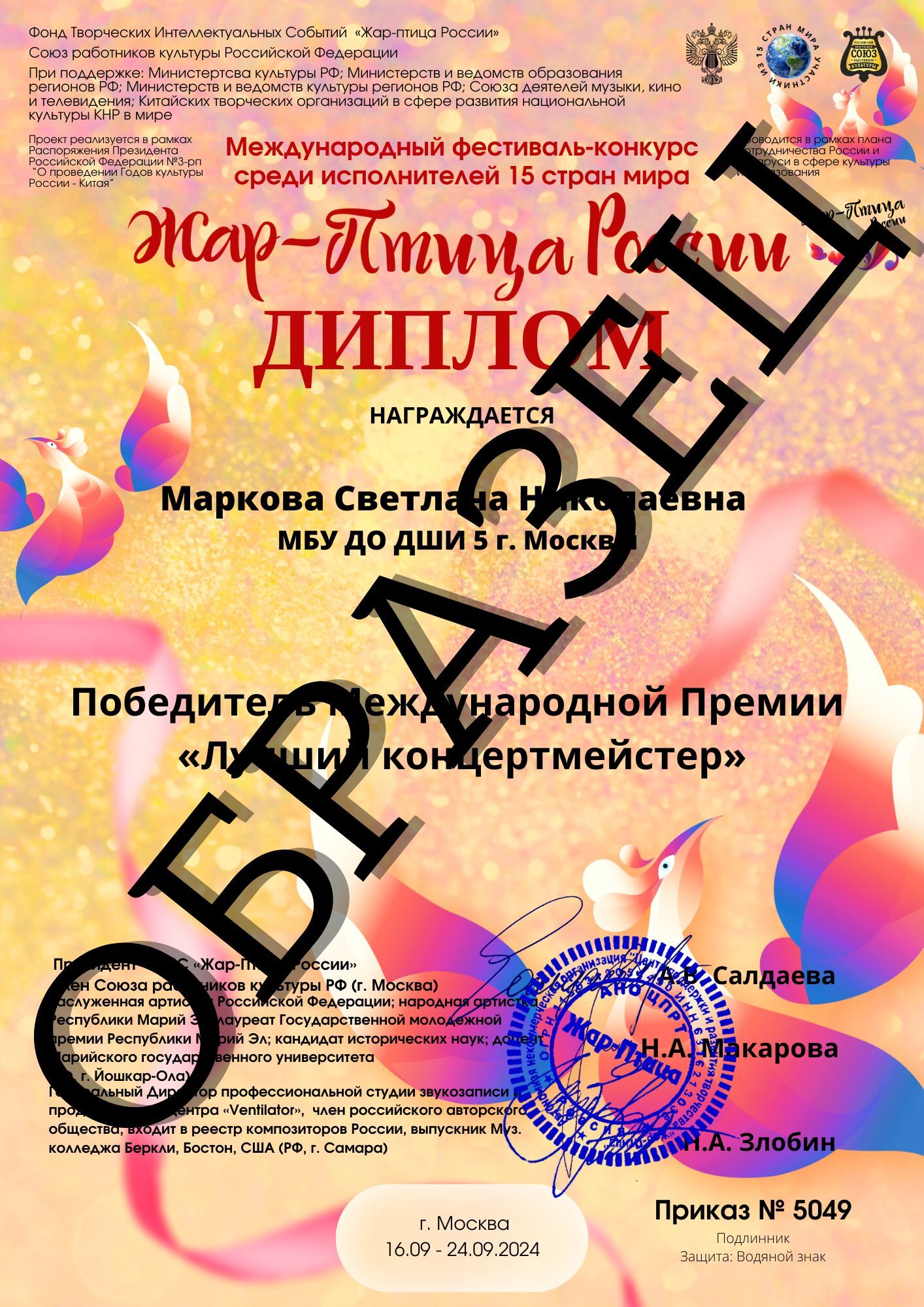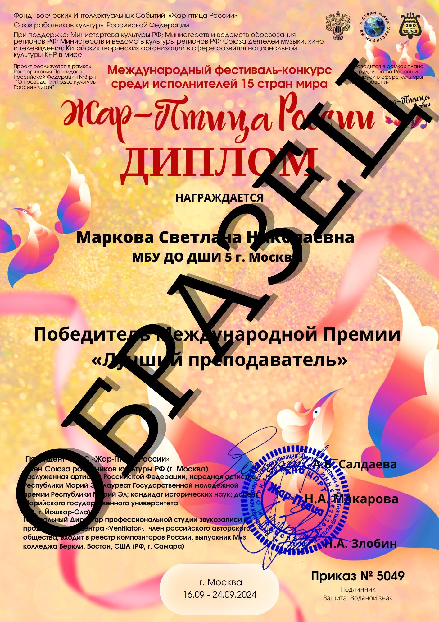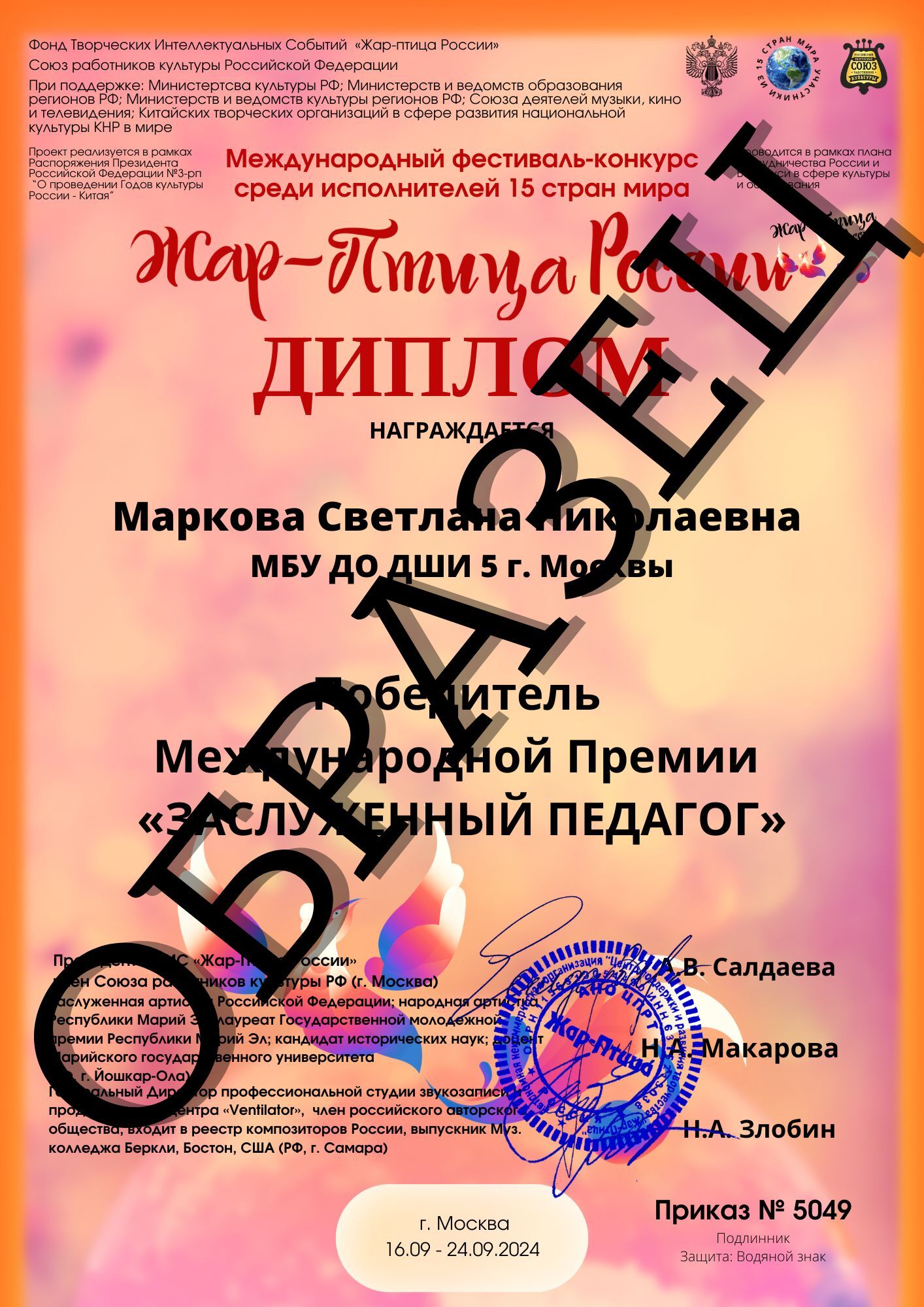 *только для тех педагогов, чей колектив/ученик занял Гран-при или Лауреата 1