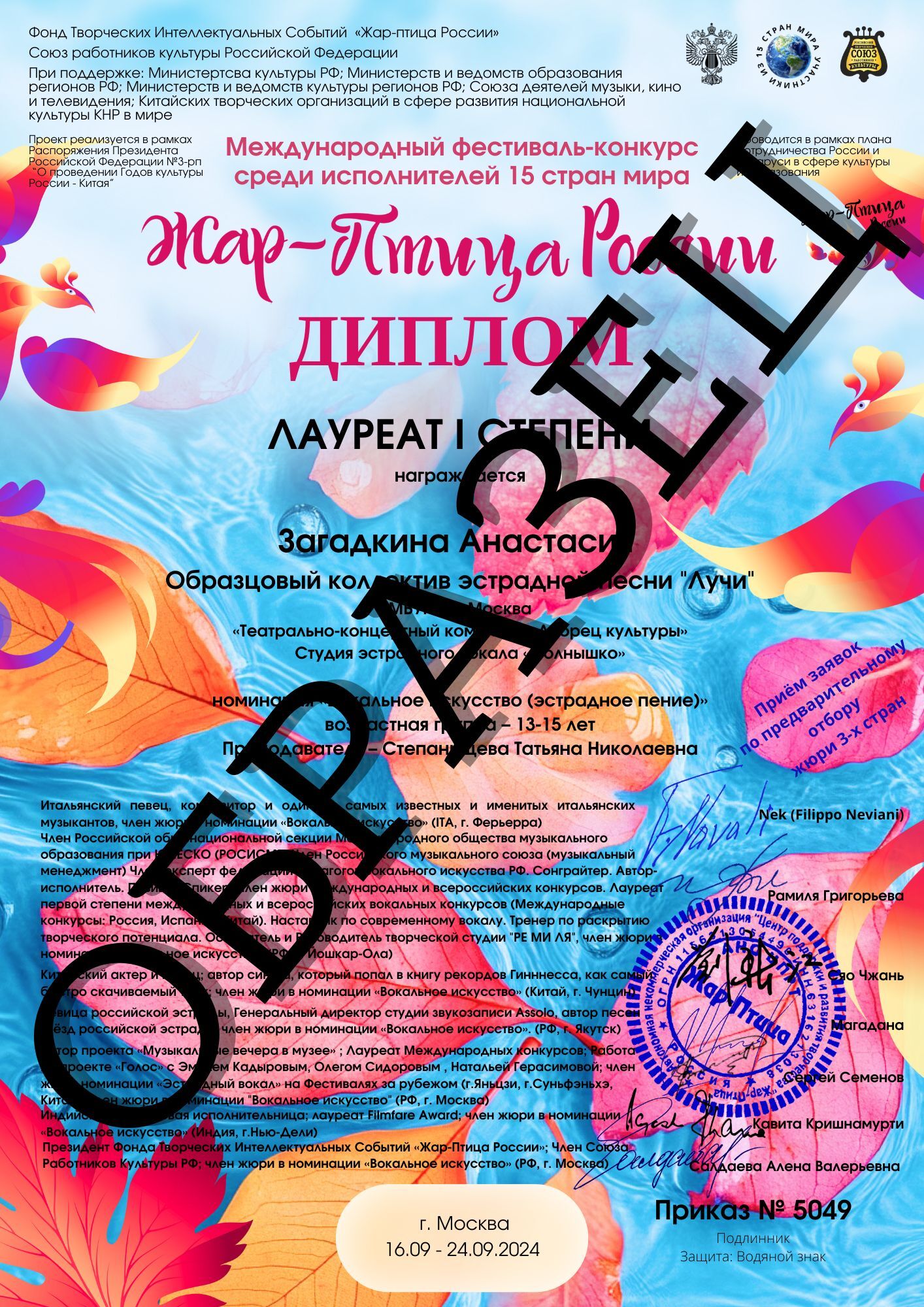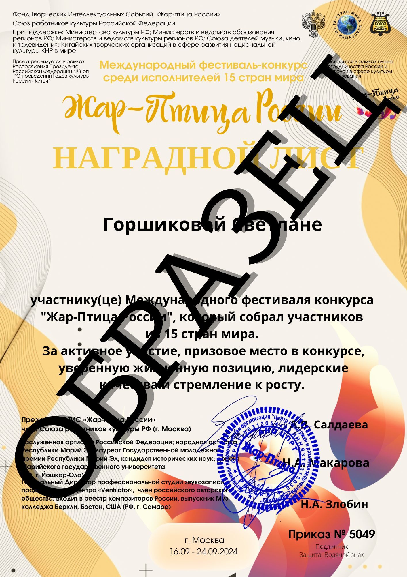 Это образец, в дипломе будет Ваше место из итоговой таблицы. Жюри будет из вашей номинации.