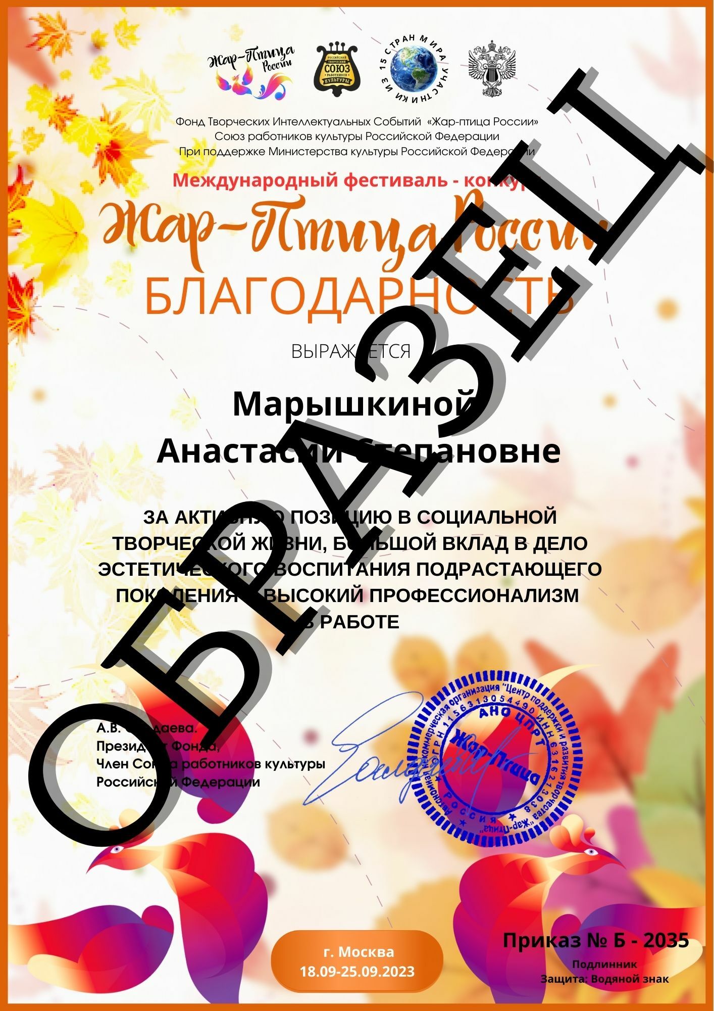 ФОНД ТВОРЧЕСКИХ ИНТЕЛЛЕКТУАЛЬНЫХ СОБЫТИЙ «ЖАР-ПТИЦА РОССИИ»